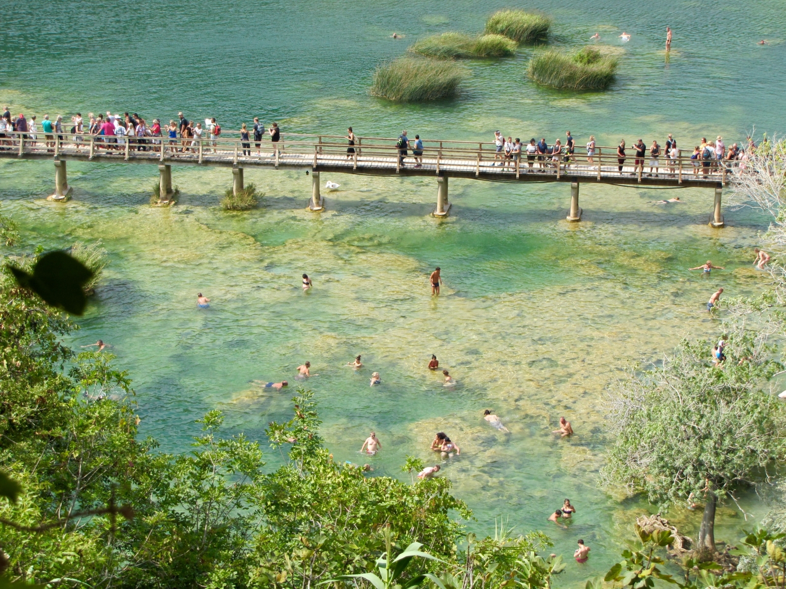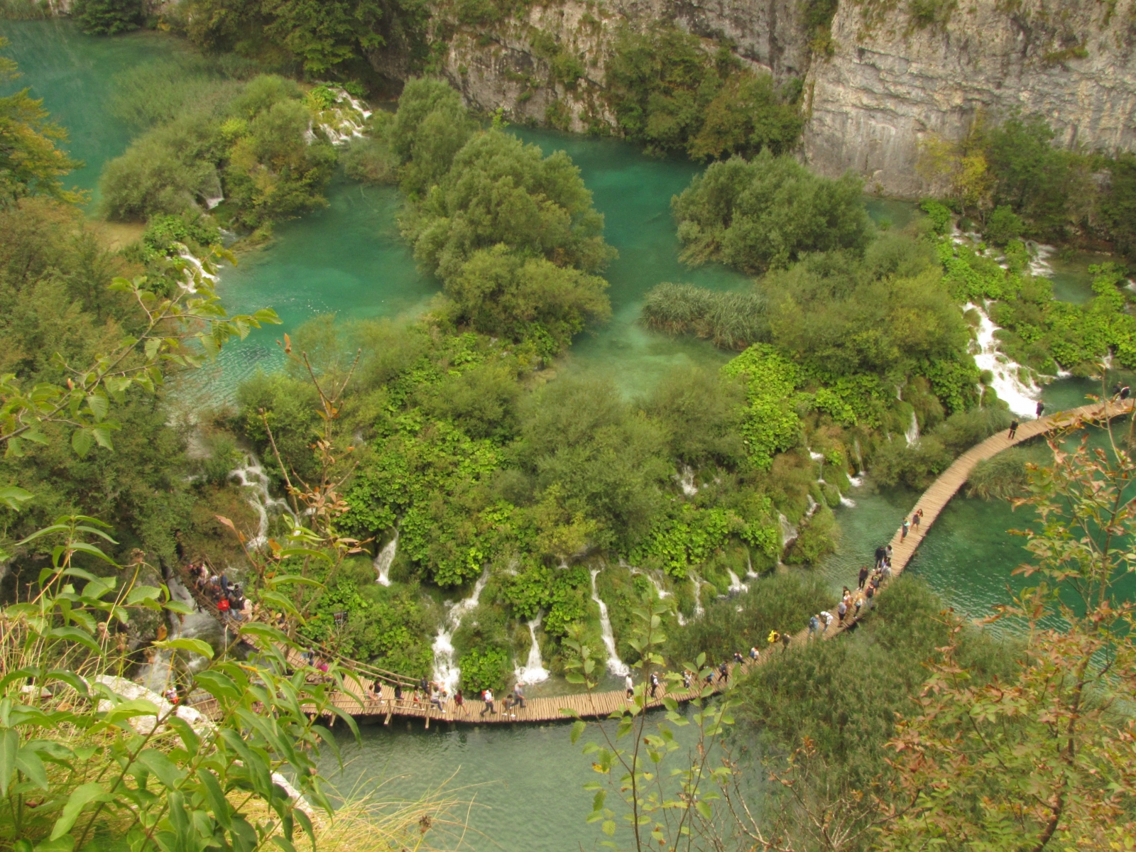 The next day, we went to Trogir and visited its historic center which has been included into UNESCO world heritage sites. We went to a bakery and had very good (not as good as the French ones of course but almost!) croissants and Croatian pastry with fresh orange juice sitting on a bench in front of the harbour. This gave us the energy we needed to have fun in Krka park during the afternoon where we saw waterfalls and could even get a swim! By the end of the day, we reached Plitvice lakes.