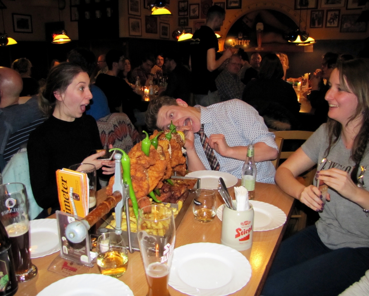 1. januar, destination: Schonbrunn. Her skulle vi på det helt store besøg for at se den kejserlige bolig og til koncert i Orangeriet. Det hele vel tilsat Kaiserschmarrn. Om aftenen tog vi på restaurant “Centimeteren”, hvor vi bestilte et sværd! Nydeligt pakket med kylling, schnitzel, kotelet så det halve burde have været nok. Det var det ikke!