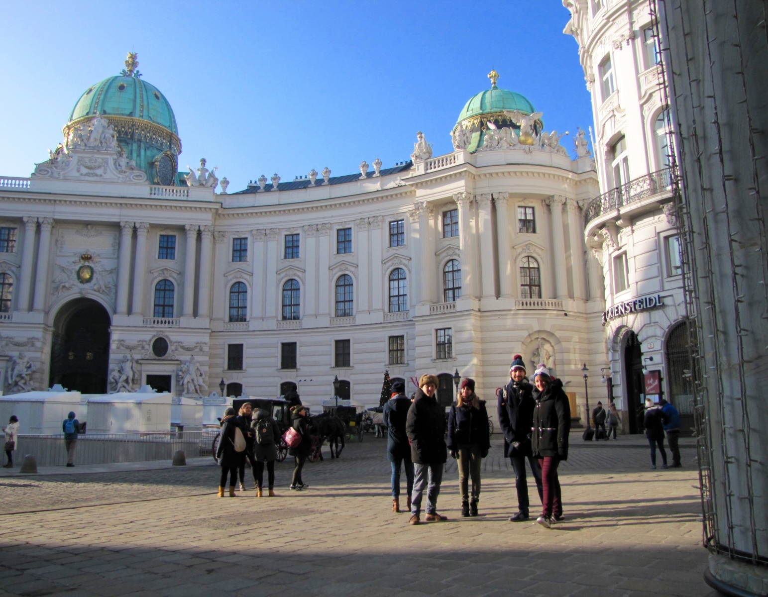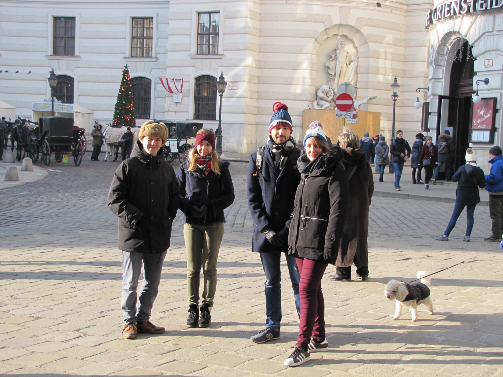 Efter alle var ankommet og bagagen blev smidt i lejligheden, tog vi på cafe for at smage på Wiens varer: varm chokolade (med rom – Mums!), goulash, schnitzel og naturligvis Apfel Strudel. Efter festligheden tog vi hen for at se de mange aktiviteter i Silversterpfad: vals i gaderne (vi var ikke så ringe endda!), koncerter i alle stile og et besøg på Musikmuseet. Efter en lang gåtur tog vi tilbage for at fejre nytåret med middag og vin.